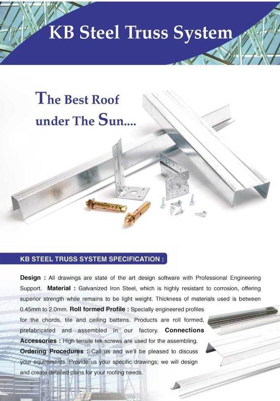 We are manufacturing few types of C-Purlin, C-Channel, Box Channel and N-Channel. We also provided the accessories for the Steel Truss System.